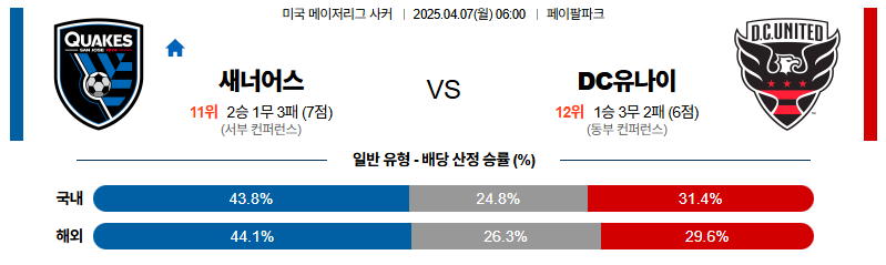 산호세 대 DC유나이티드 메이저리그사커 04월07일 맞대결 생중계, 스포츠중계, 스포츠분석