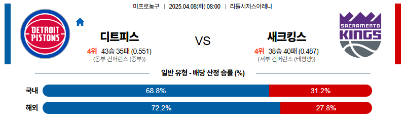 디트로이트 대 새크라멘토 NBA 04월08일 맞대결 생중계, 스포츠중계, 스포츠분석