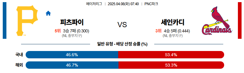 피츠버그 대 세인트루이스 MLB 04월08일 맞대결 생중계, 스포츠중계, 스포츠분석