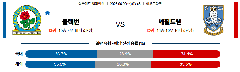 블랙번 대 셰필드 잉글랜드챔피언쉽 04월09일 맞대결 생중계, 스포츠중계, 스포츠분석