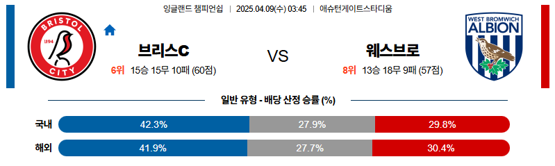 브리스톨 대 웨스트 잉글랜드챔피언쉽 04월09일 맞대결 생중계, 스포츠중계, 스포츠분석