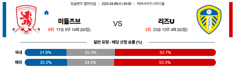 미들즈브러 대 리즈 잉글랜드챔피언쉽 04월09일 맞대결 생중계, 스포츠중계, 스포츠분석