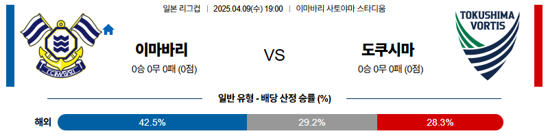 이마바리 대 도쿠시마 일본YBC르방컵 04월09일 맞대결 생중계, 스포츠중계, 스포츠분석