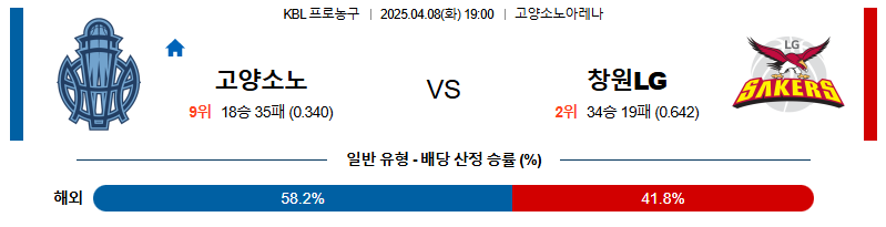 고양소노 대 창원LG KBL 04월08일 맞대결 생중계, 스포츠중계, 스포츠분석