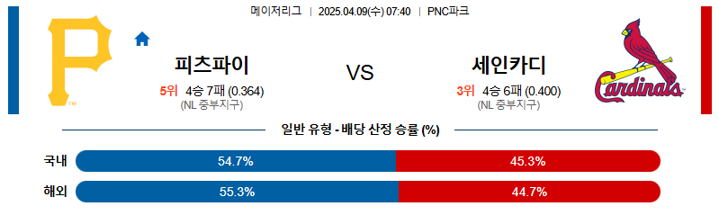 피츠버그 대 세인트루이스 MLB 04월09일 맞대결 생중계, 스포츠중계, 스포츠분석
