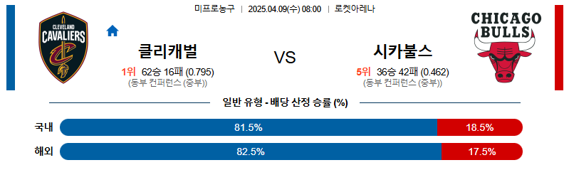 클리블랜드 대 시카고 NBA 04월09일 맞대결 생중계, 스포츠중계, 스포츠분석