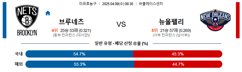 브루클린 대 뉴올리언스 NBA 04월09일 맞대결 생중계, 스포츠중계, 스포츠분석