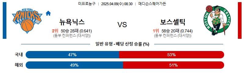 뉴욕닉스 대 보스턴 NBA 04월09일 맞대결 생중계, 스포츠중계, 스포츠분석