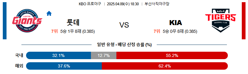 롯데 대 KIA KBO 04월09일 맞대결 생중계, 스포츠중계, 스포츠분석