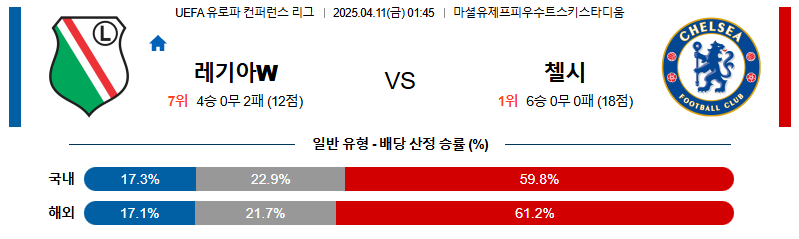 레기아 대 첼시 UEFA컨퍼런스리그 04월11일 맞대결 생중계, 스포츠중계, 스포츠분석