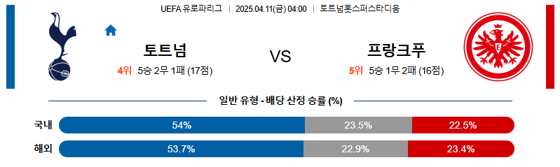 토트넘 대 프랑크푸르트 UEFA유로파리그 04월11일 맞대결 생중계, 스포츠중계, 스포츠분석