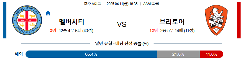 멜버른시티 대 브리즈번 호주A리그 04월11일 맞대결 생중계, 스포츠중계, 스포츠분석