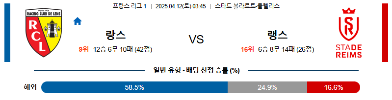 랑스 대 랭스 리그앙 04월12일 맞대결 생중계, 스포츠중계, 스포츠분석