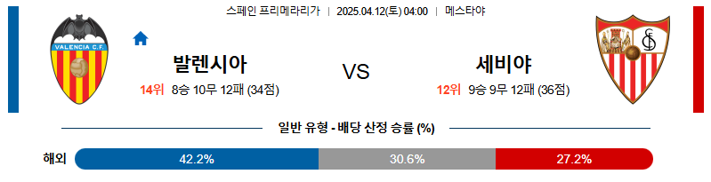 발렌시아 대 세비야 라리가 04월12일 맞대결 생중계, 스포츠중계, 스포츠분석