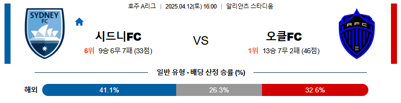 시드니 대 오클랜드 호주A리그 04월12일 맞대결 생중계, 스포츠중계, 스포츠분석