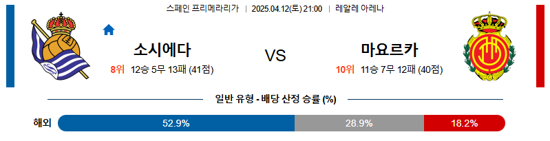 소시에다드 대 마요르카 라리가 04월12일 맞대결 생중계, 스포츠중계, 스포츠분석