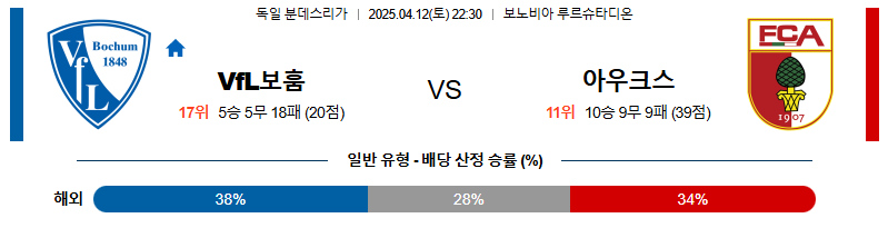 보훔 대 아우크스부르크 분데스리가 04월12일 맞대결 생중계, 스포츠중계, 스포츠분석