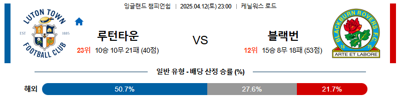 루턴타운 대 블랙번 잉글랜드챔피언쉽 04월12일 맞대결 생중계, 스포츠중계, 스포츠분석