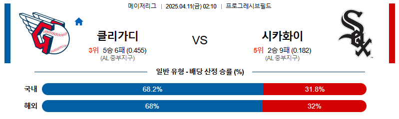 클리블랜드 대 시카고W MLB 04월11일 맞대결 생중계, 스포츠중계, 스포츠분석