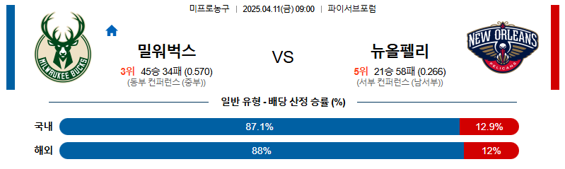 밀워키 대 뉴올리언스 NBA 04월11일 맞대결 생중계, 스포츠중계, 스포츠분석