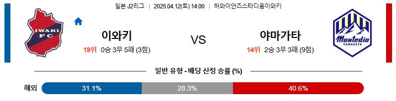 이와키 대 야마가타 J리그2 04월12일 맞대결 생중계, 스포츠중계, 스포츠분석