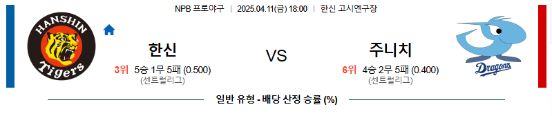 한신 대 주니치 NPB 04월11일 맞대결 생중계, 스포츠중계, 스포츠분석