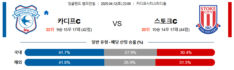 카디프시티 대 스토크시티 잉글랜드챔피언쉽 04월12일 맞대결 생중계, 스포츠중계, 스포츠분석