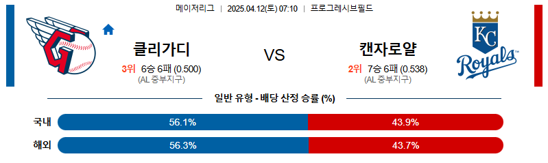 클리블랜드 대 캔자스시티 MLB 04월12일 맞대결 생중계, 스포츠중계, 스포츠분석