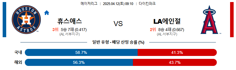 휴스턴 대 LA에인절스 MLB 04월12일 맞대결 생중계, 스포츠중계, 스포츠분석