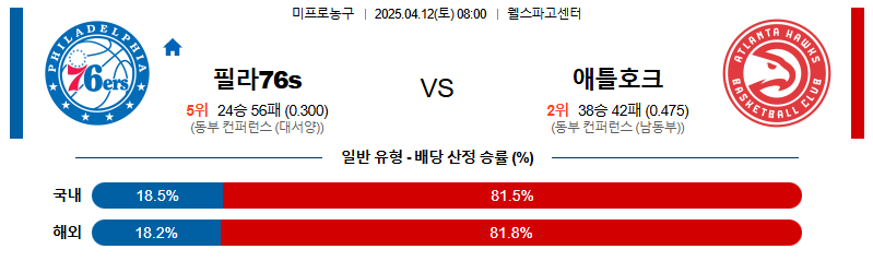 필라델피아 대 애틀란타 NBA 04월12일 맞대결 생중계, 스포츠중계, 스포츠분석
