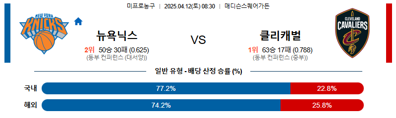 뉴욕닉스 대 클리블랜드 NBA 04월12일 맞대결 생중계, 스포츠중계, 스포츠분석