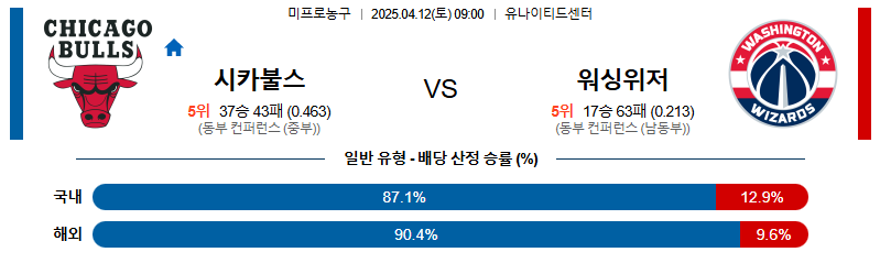 시카고 대 워싱턴 NBA 04월12일 맞대결 생중계, 스포츠중계, 스포츠분석