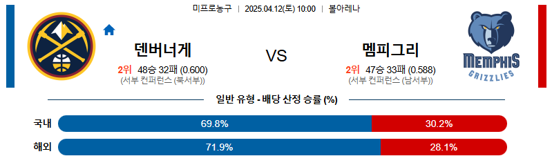덴버 대 멤피스 NBA 04월12일 맞대결 생중계, 스포츠중계, 스포츠분석