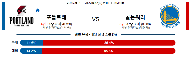 포틀랜드 대 골든스테이트 NBA 04월12일 맞대결 생중계, 스포츠중계, 스포츠분석