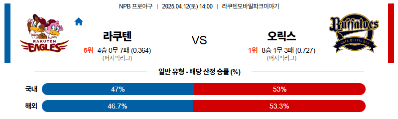 라쿠텐 대 오릭스 NPB 04월12일 맞대결 생중계, 스포츠중계, 스포츠분석