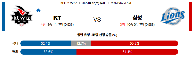 KT 대 삼성 KBO 04월12일 맞대결 생중계, 스포츠중계, 스포츠분석