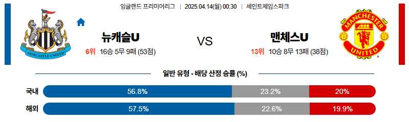 뉴캐슬 대 맨유 프리미어리그 04월14일 맞대결 생중계, 스포츠중계, 스포츠분석