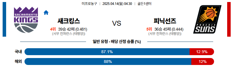 새크라멘토 대 피닉스 NBA 04월14일 맞대결 생중계, 스포츠중계, 스포츠분석
