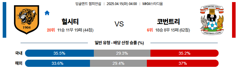 헐시티 대 코벤트리 잉글랜드챔피언쉽 04월15일 맞대결 생중계, 스포츠중계, 스포츠분석