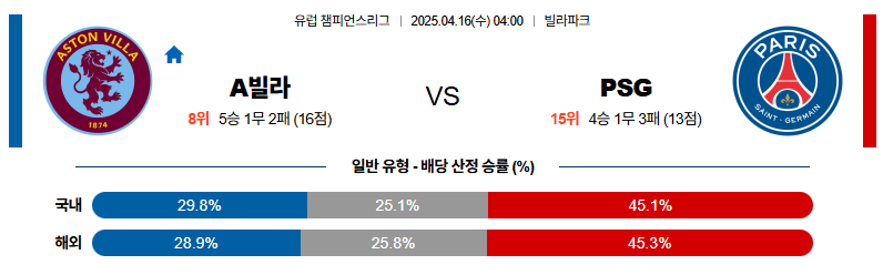 아스톤빌라 대 PSG UEFA챔피언스리그 04월16일 맞대결 생중계, 스포츠중계, 스포츠분석