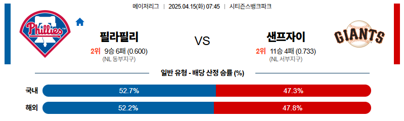필라델피아 대 샌프란시스코 MLB 04월15일 맞대결 생중계, 스포츠중계, 스포츠분석