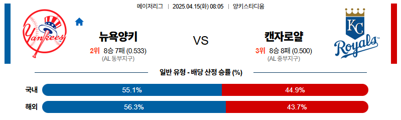 뉴욕양키스 대 캔자스시티 MLB 04월15일 맞대결 생중계, 스포츠중계, 스포츠분석
