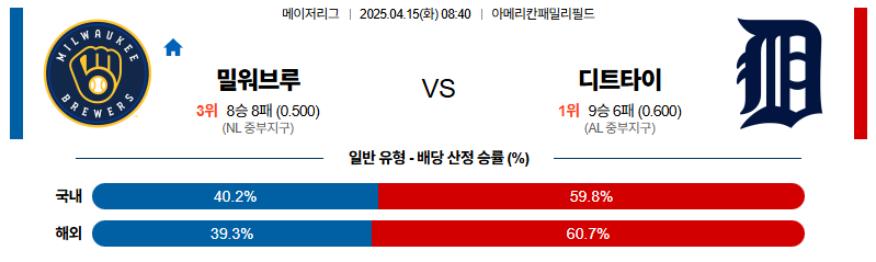 밀워키 대 디트로이트 MLB 04월15일 맞대결 생중계, 스포츠중계, 스포츠분석