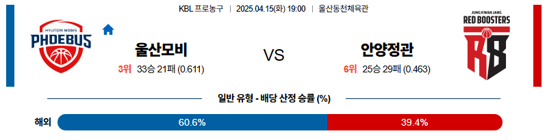 울산현대모비스 대 안양정관장 KBL 04월15일 맞대결 생중계, 스포츠중계, 스포츠분석