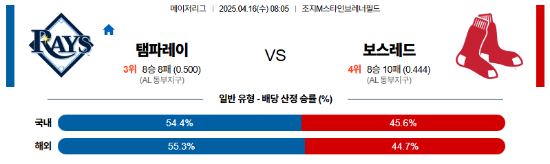 탬파베이 대 보스턴 MLB 04월16일 맞대결 생중계, 스포츠중계, 스포츠분석