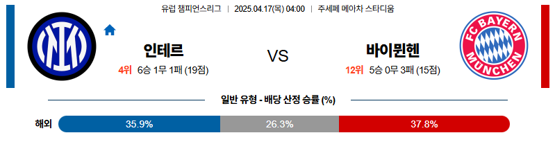 인터밀란 대 바이에른뮌헨 UEFA챔피언스리그 04월17일 맞대결 생중계, 스포츠중계, 스포츠분석