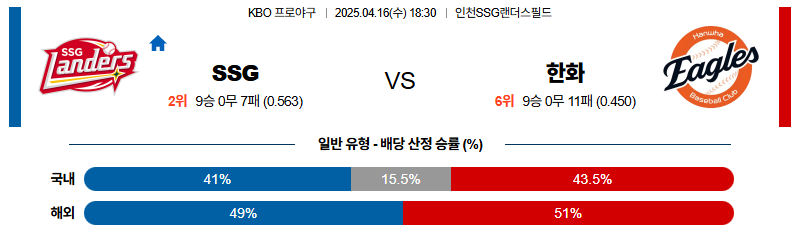 SSG 대 한화 KBO 04월16일 맞대결 생중계, 스포츠중계, 스포츠분석