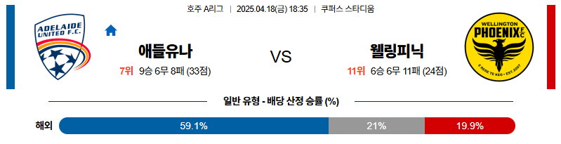 애들레이드 대 웰링턴 호주A리그 04월18일 맞대결 생중계, 스포츠중계, 스포츠분석