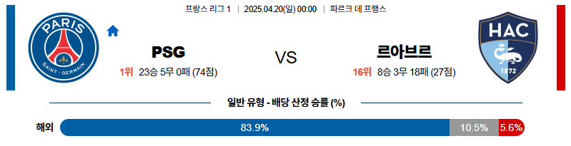PSG 대 르아브르 리그앙 04월20일 맞대결 생중계, 스포츠중계, 스포츠분석