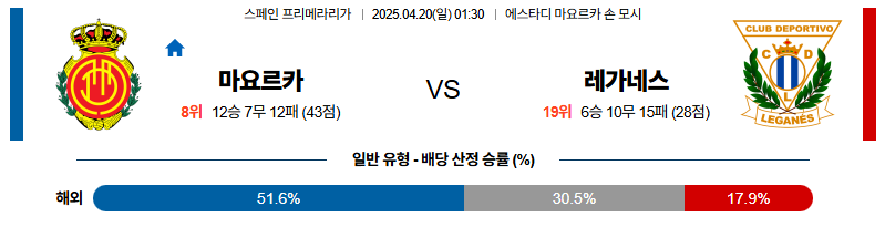 마요르카 대 레가네스 라리가 04월20일 맞대결 생중계, 스포츠중계, 스포츠분석